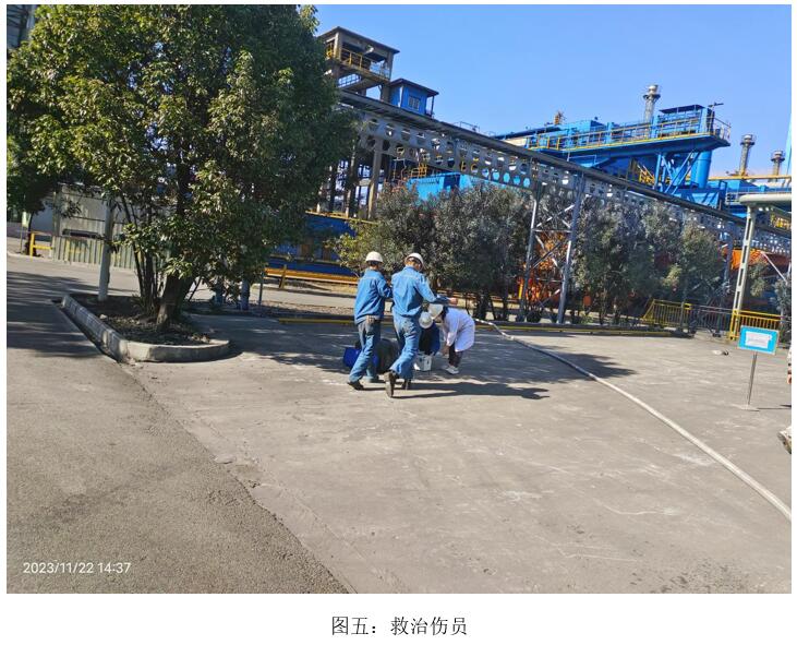 本次演練模擬2023年11月22日10:00分,焦化脫硫脫硝巡檢員發(fā)現(xiàn)焦化6號(hào)門因其他公司職工在外抽煙后,煙頭未熄滅直接丟入綠化帶,將綠化帶內(nèi)干雜草點(diǎn)燃,發(fā)生火災(zāi),后藍(lán)鼎公司現(xiàn)場(chǎng)巡檢員立即上報(bào)并按領(lǐng)導(dǎo)指示警戒、滅火、救治傷員、現(xiàn)場(chǎng)清理、結(jié)果匯報(bào)等措施消除火災(zāi)。