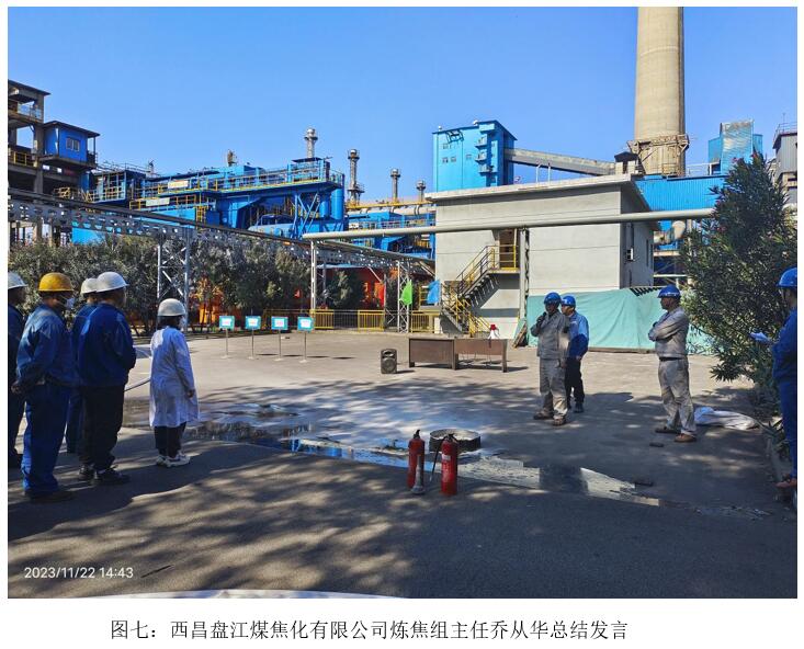 為檢驗(yàn)焦化脫硫脫硝消防應(yīng)急預(yù)案的實(shí)際操作性和有效性,全面提升公司應(yīng)對(duì)突發(fā)生產(chǎn)安全事故的應(yīng)急響應(yīng)、指揮、協(xié)調(diào)、現(xiàn)場(chǎng)處置和應(yīng)急救援能力。11月22日14:00由西昌盤江煤焦化有限公司主辦,在焦化脫硫脫硝停車場(chǎng)舉辦2023年焦化脫硫脫硝現(xiàn)場(chǎng)應(yīng)急演練。參加本次演練的有:西昌盤江煤焦化有限公司煉焦組主任喬從華、安全管理員王德強(qiáng)、西昌藍(lán)鼎生產(chǎn)部副部長(zhǎng)王建勇、王煜軒、當(dāng)班檢修、當(dāng)班操作人員及后勤部門。